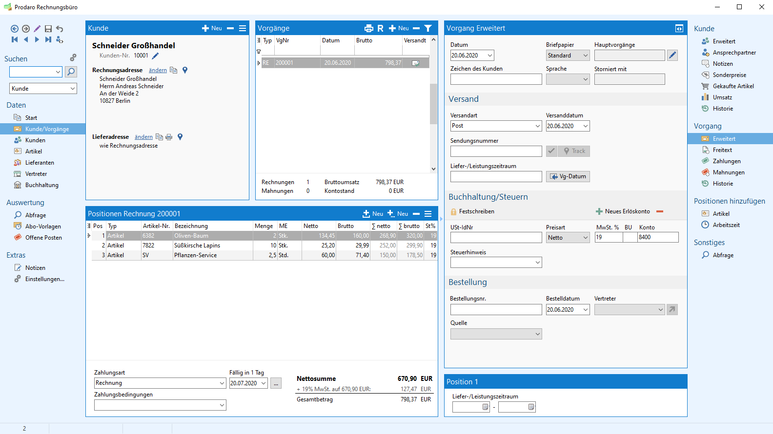 Mit Textverarbeitungen, wie z.B. Word/Excel, erstellte Rechnungen genügen den gesetzlichen Anforderungen nicht. Zum Beispiel ist nachträgliches Ändern von Rechnungen und Buchungen nicht erlaubt. Das Prodaro Rechnungsbüro schließt dies aus.